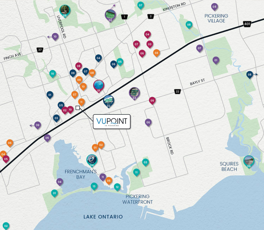 This distinguished condominium community of three spectacular towers puts you atop the city’s greatest vantage point, offering envied panoramic vistas stretching kilometres in every direction. Revel in this evolving location with Pickering Town Centre steps away, plus the vast expanse of Durham Live just a short drive further.